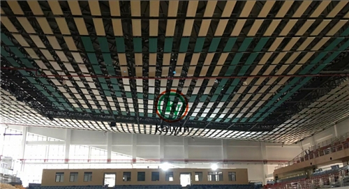 凱音吸聲體是專用于體育館空間吸聲裝飾作用的功能性裝飾材料,是一種分散懸掛于建筑空間上部,用以降低室內噪聲或改善室內音質的吸聲構件??臻g吸聲體具有用料少、重量輕、投資省、吸聲效率高、布置靈活、施工方便的特點。